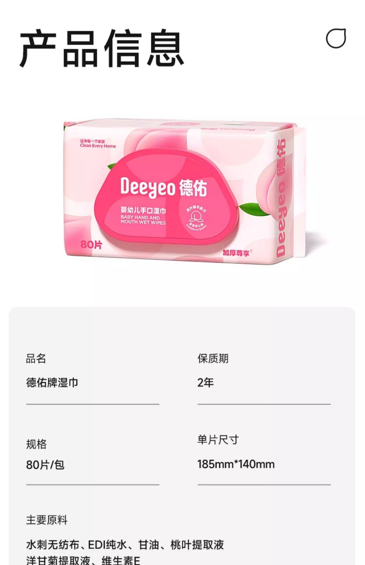 Get Deeyeo Hand and Mouth Wet Wipes 80pcs Peach Leaf Delivered | MásGusto Latino Market