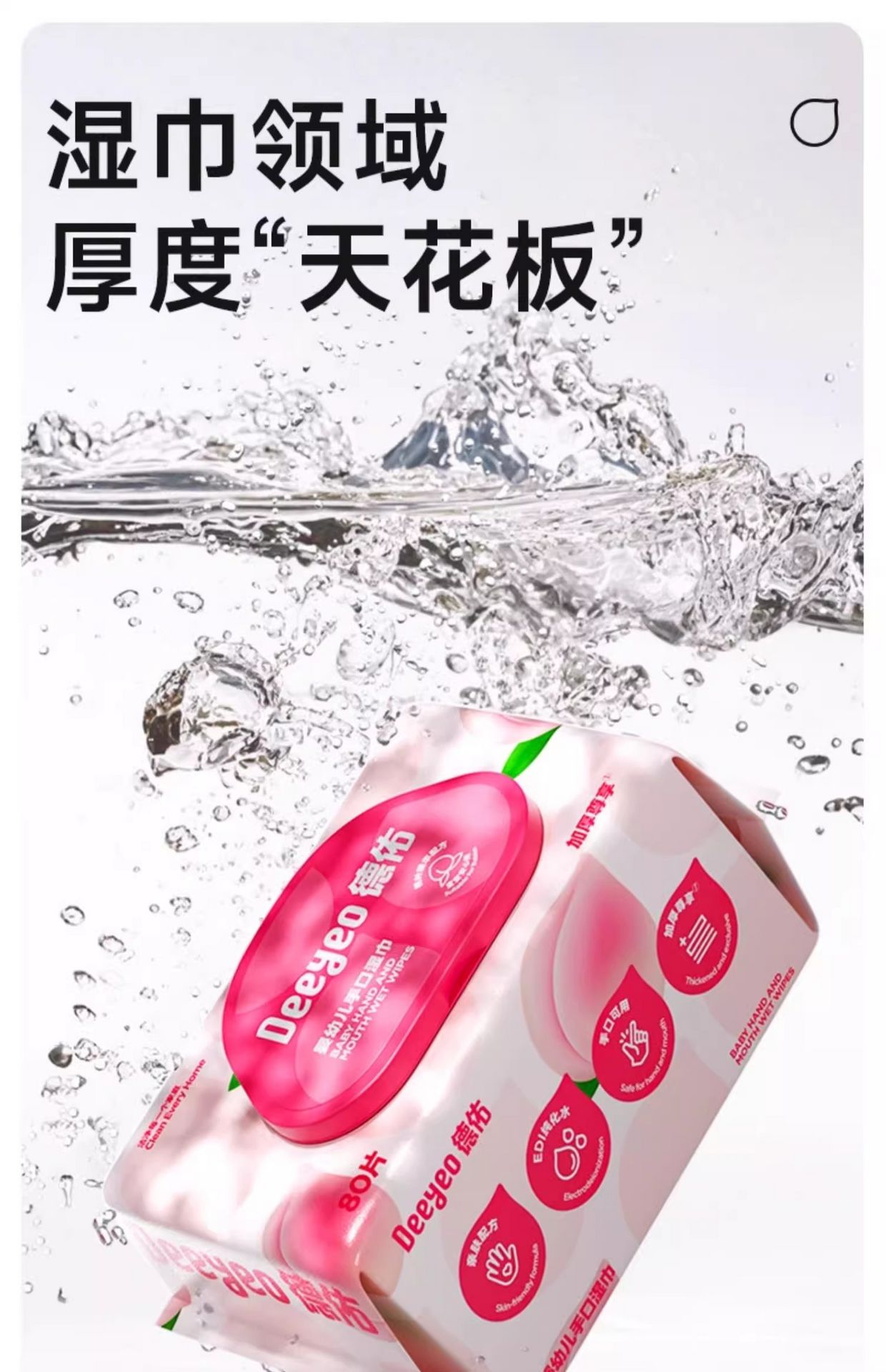Deeyeo Hand and Mouth Wet Wipes 80pcs Peach Leaf 1 each