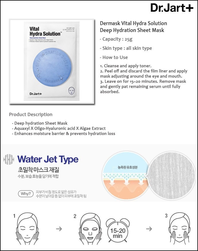 Dr.Jart+ Vital Hydra Solution Deep Hydration Sheet Masks, 5pk