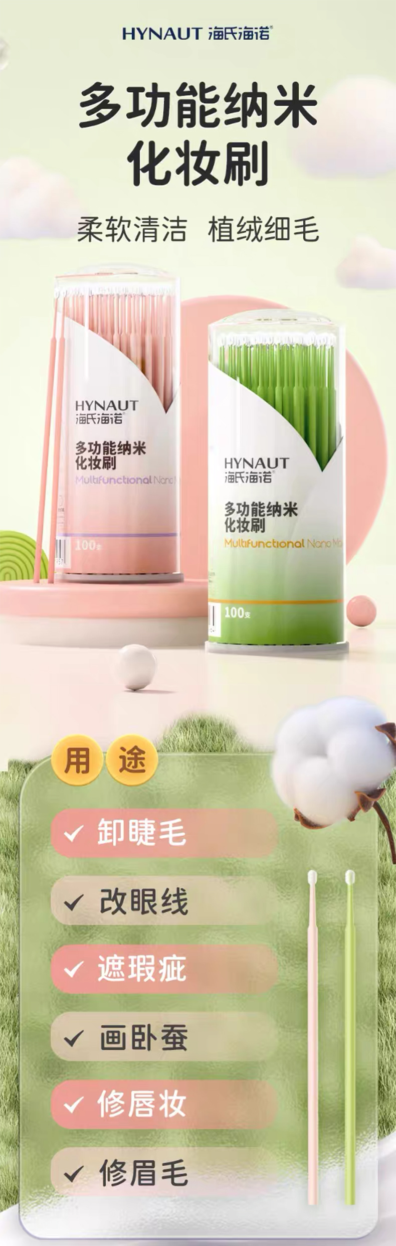 Hisnho Nano Makeup Brush & Cleaner Swabs (100pc) 1 box