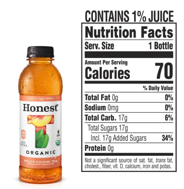 Honest Tea Organic Peach Oo-la-long Tea—this tea is a perfect brew of organic oolong and black tea and includes organic cane sugar