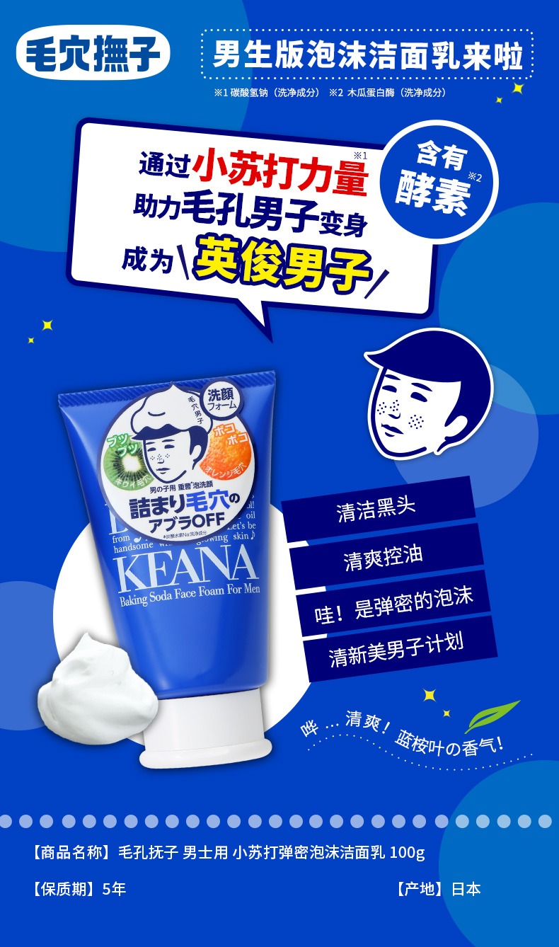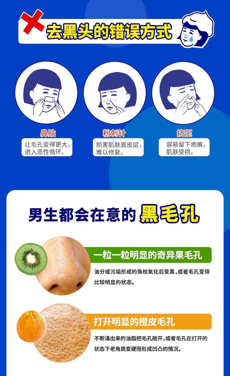 Contains moisturizing hyaluronic acid and collagen, leaving pores clear and smooth, for handsome skin.