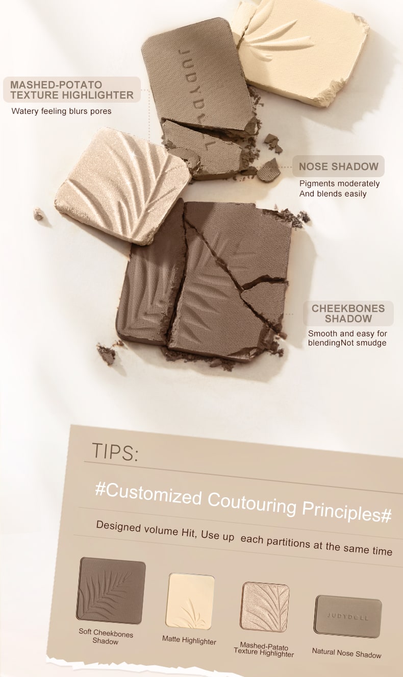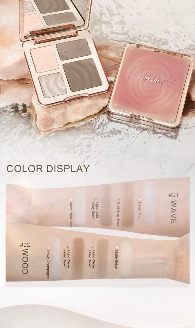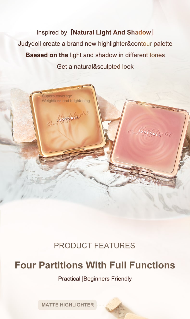 JUDYDOLL 2 IN1 Highlighter Contour Palette#01Waves 1 each