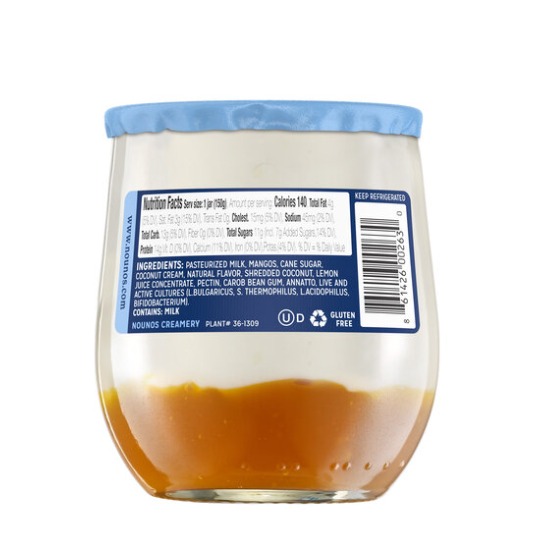 A tropical splash of mango fruit on the bottom paired with our deliciously smooth coconut cream blend makes this our best-selling flavor. Try this premium yogurt today.