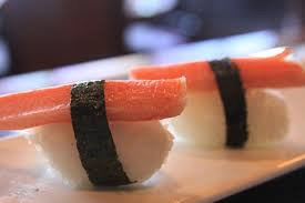 Ingredients: Surimi (process white fish meat [threadfin bream] and/or [alaska pollack]), water, modified tapioca starch, sorbitol, salt, refined soybean oil, sugar, natural crab extract, artificial lobster flavor, natural squid extract, monosodium glutamate, glycine, egg white (dry), disodium inosinate, Disodium guanylate, natural color lycopene, carmines and paprika.