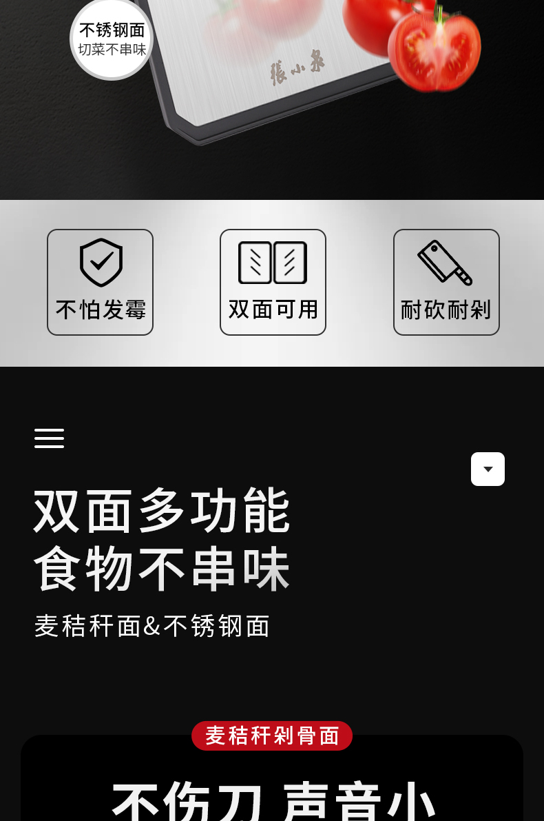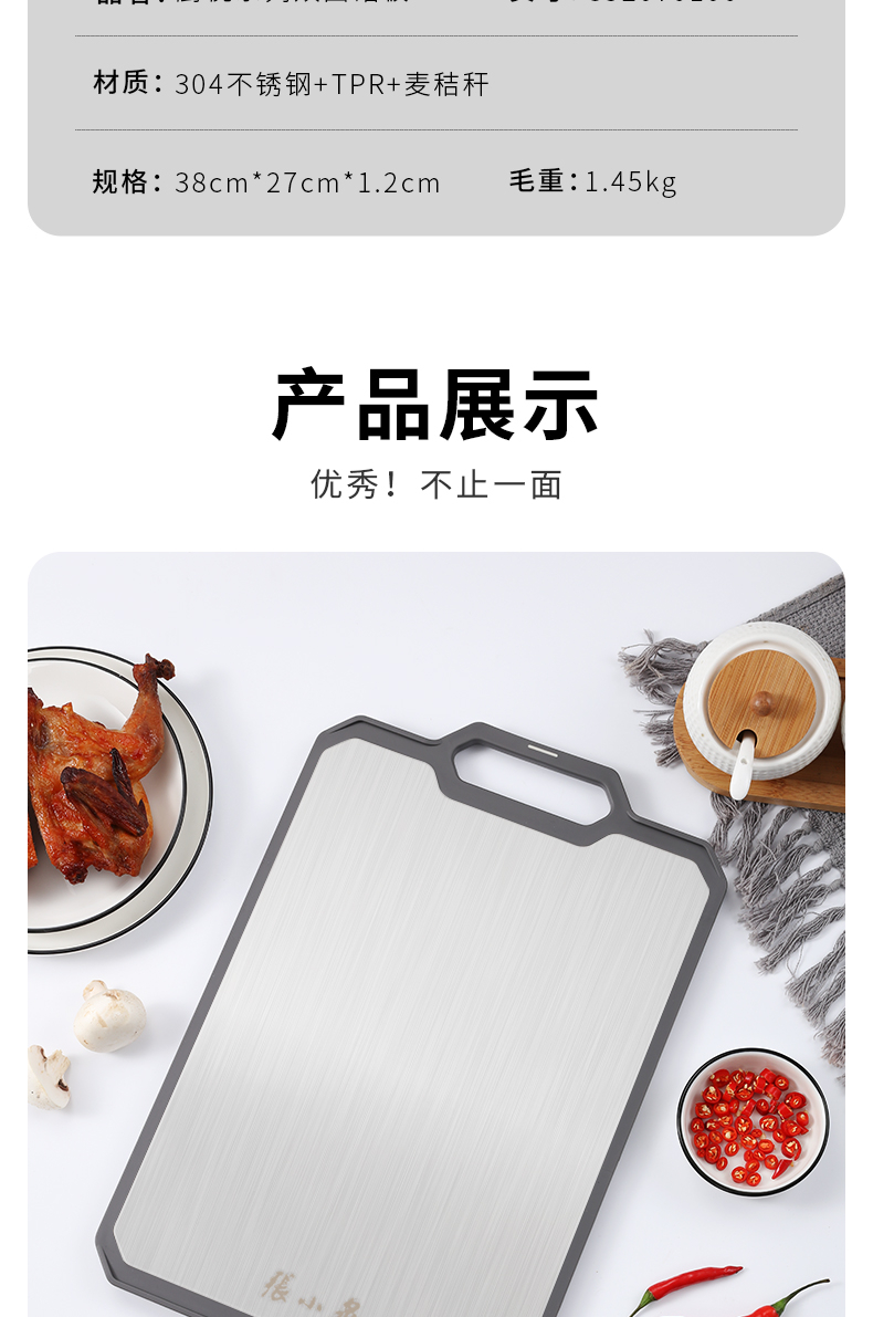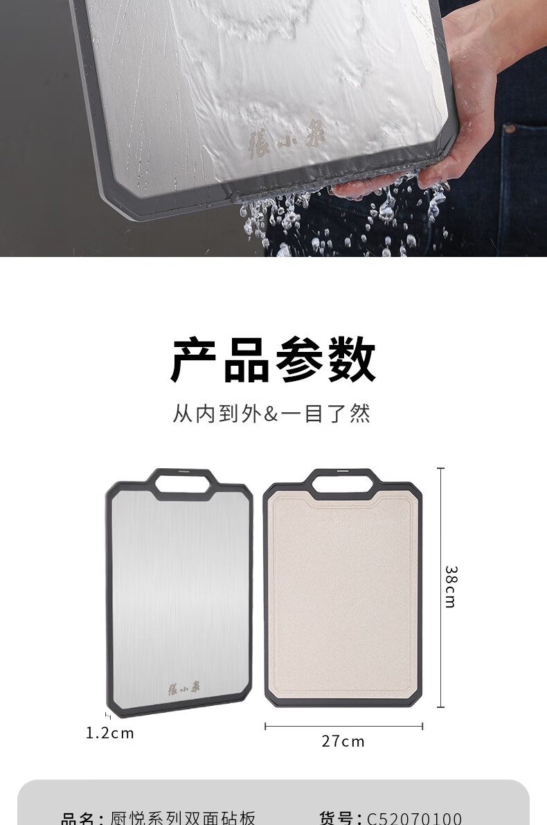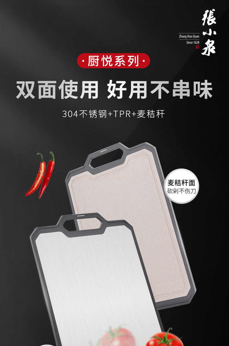 Zhang Xiao Quan Chuyue Series Double-Sided Cutting Board Stainless Steel and Wheatgrass 1 each