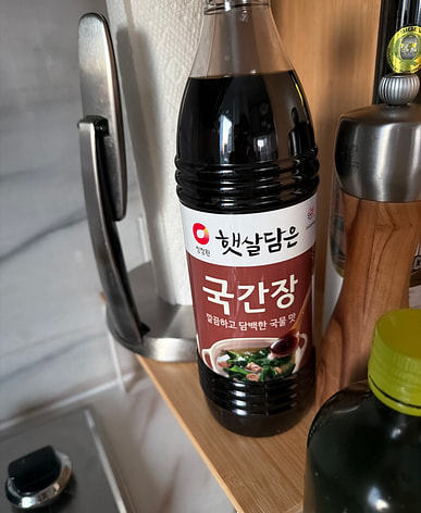 Compré todos mis condimentos en la nueva casa, en un solo lugar. Siempre he usado salsa de soja oscura Lee Kum Kee, y la volveré a envasar cuando lleguen mis botellas de condimentos.