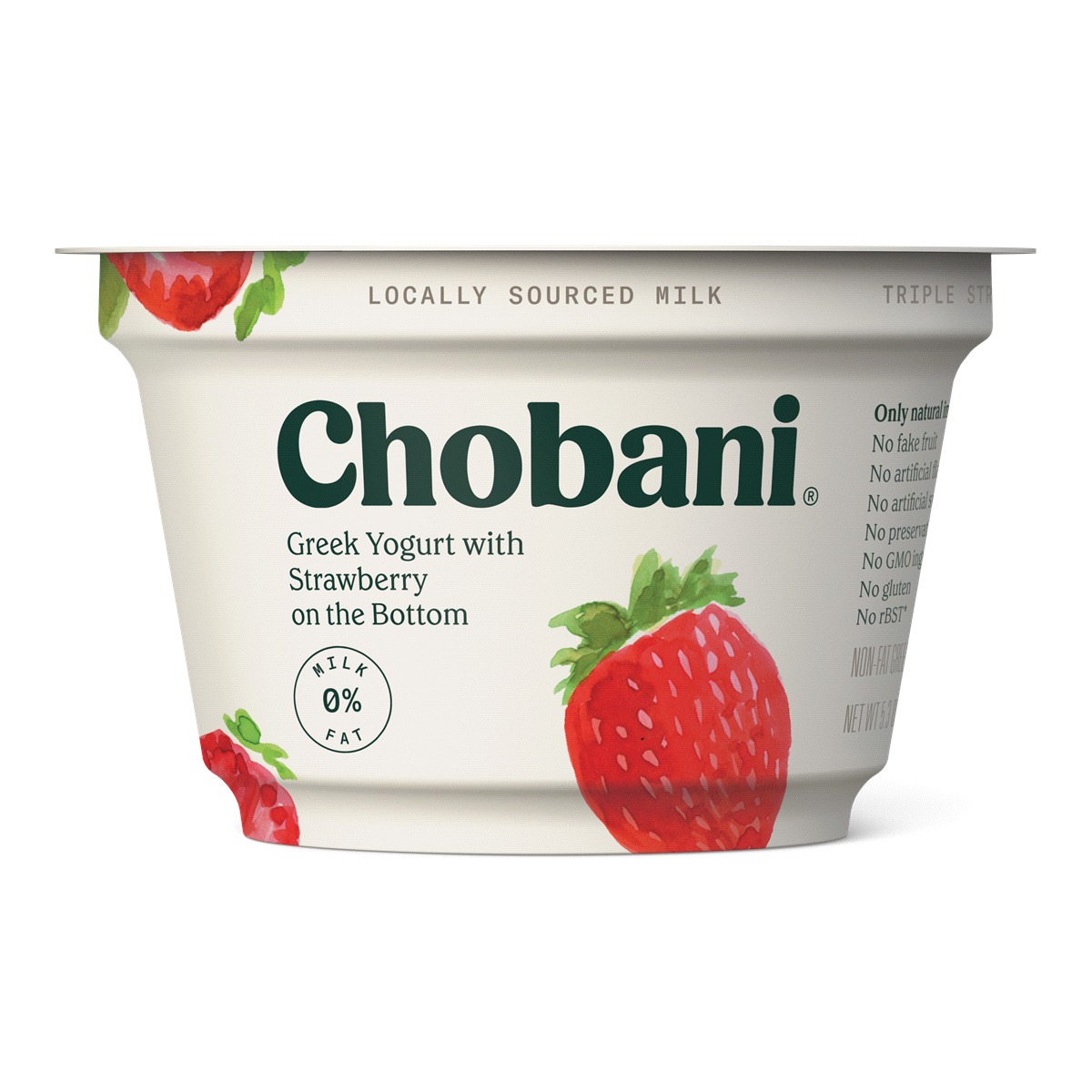 Ingredients: Cultured nonfat milk, strawberries, cane sugar, water, fruit pectin, locust bean gum, natural flavors, lemon juice concentrate, fruit and vegetable juice concentrate (for color).