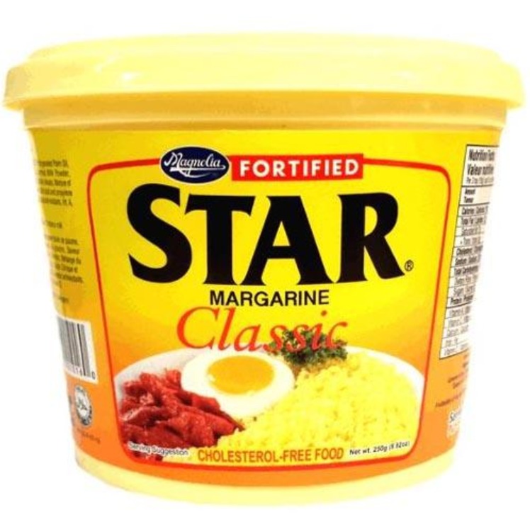 Today, the popular star margarine comes in different varieties but nothing beats the Star Margarine Regular Classic blended with coconut and palm oils for a classic buttery taste. Grab the Star Margarine Regular Classic flavor now and enjoy a cholesterol free spread for breads and cooking.