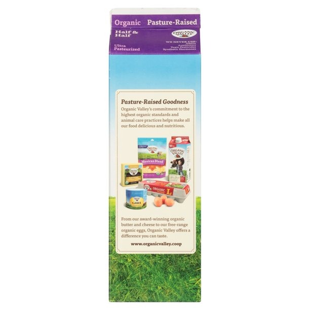 Organic Valley Ultra Pasteurized Organic Half and Half is made with pasture raised milk and organic cream for a rich flavor. This silky coffee creamer makes your morning brew and other beverages smooth and creamy.