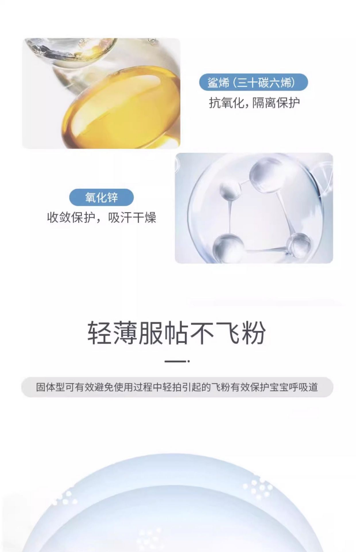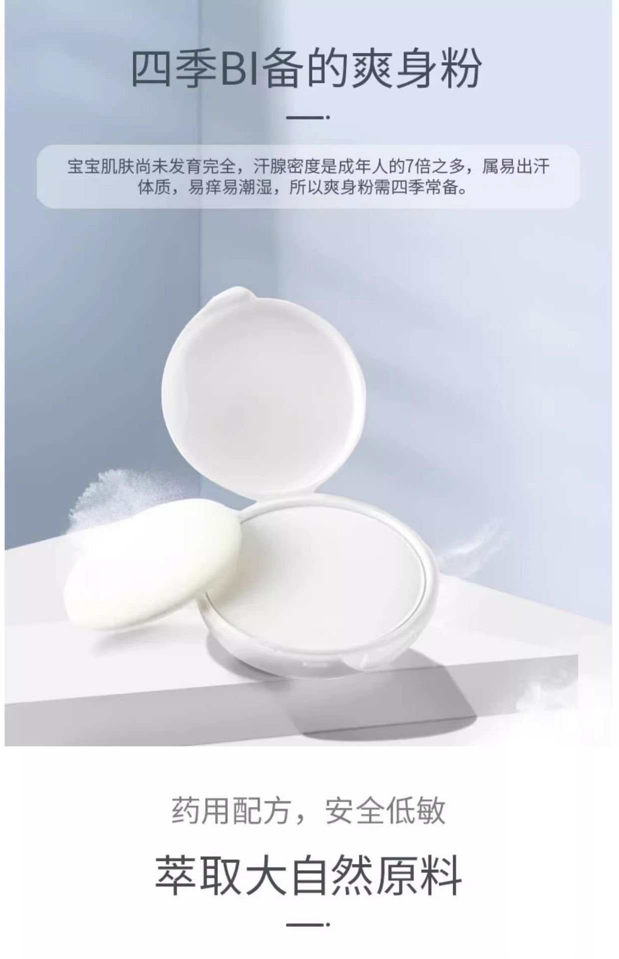 Fine and soft powder forms a light protective layer that keeps the skin dry and comfortable.