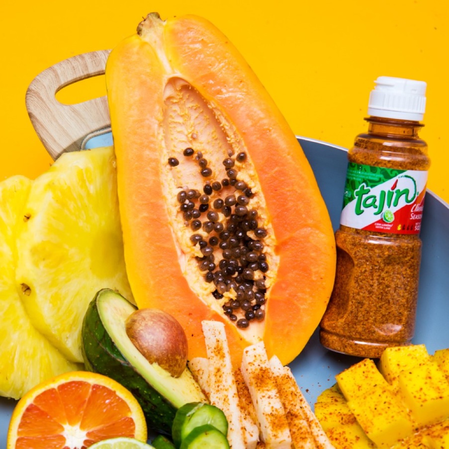 Hold everything for Tajin. Pronounced "Tah-HEEN," this fantistic blend of chili lime seasonings is about to elevate everything it touches. Sliced fruits, salads, and ice cream. The list is actually endless. A little spicy and mouthpuckering sprinkle goes a long way. And then some.